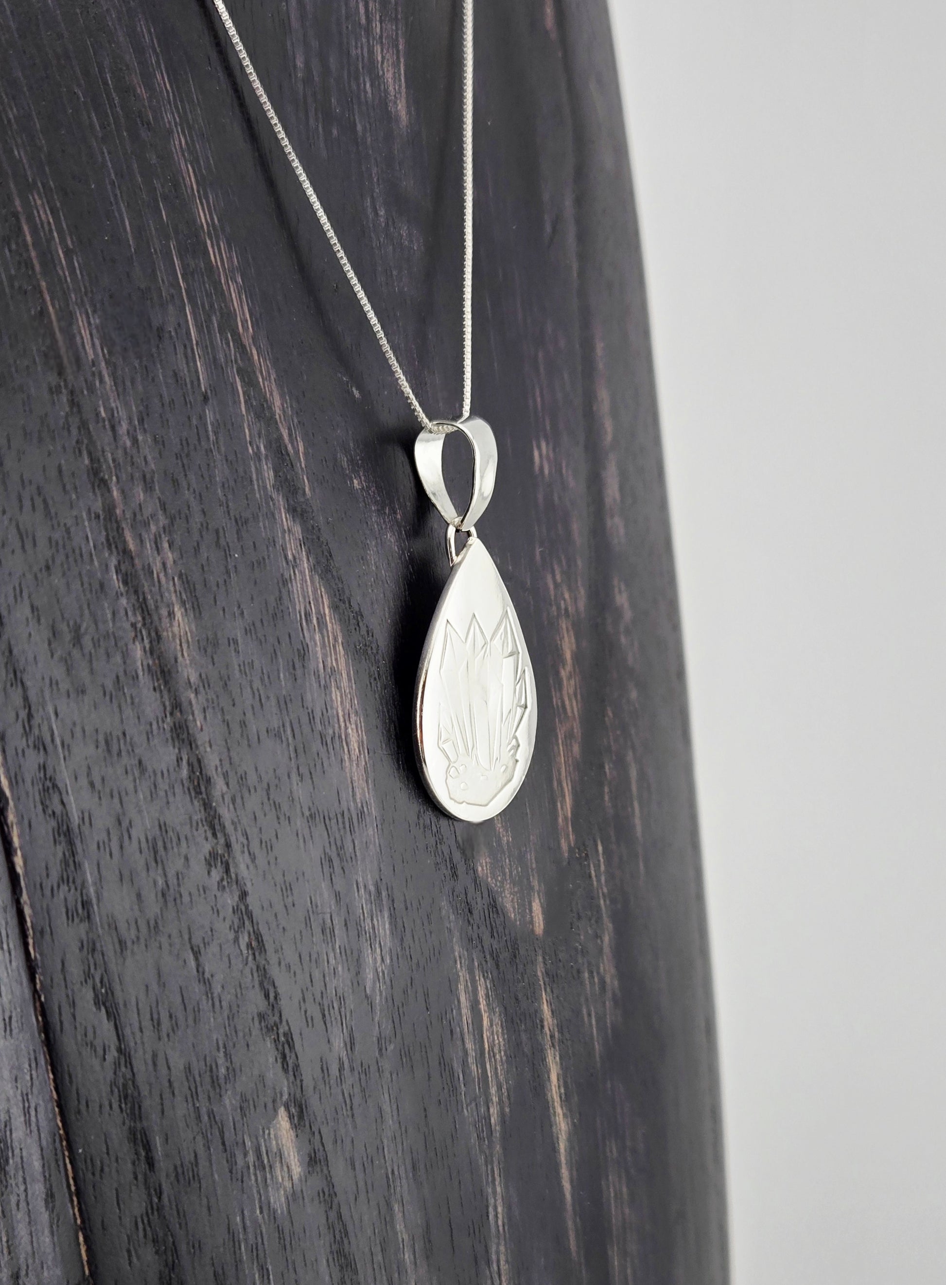 This "Crystal Cluster" Pendant was Hand Crafted from Precious Metal Clay in .999 Fine Silver. A .925 Silver Jump Ring and Custom Bale were then Attached.
